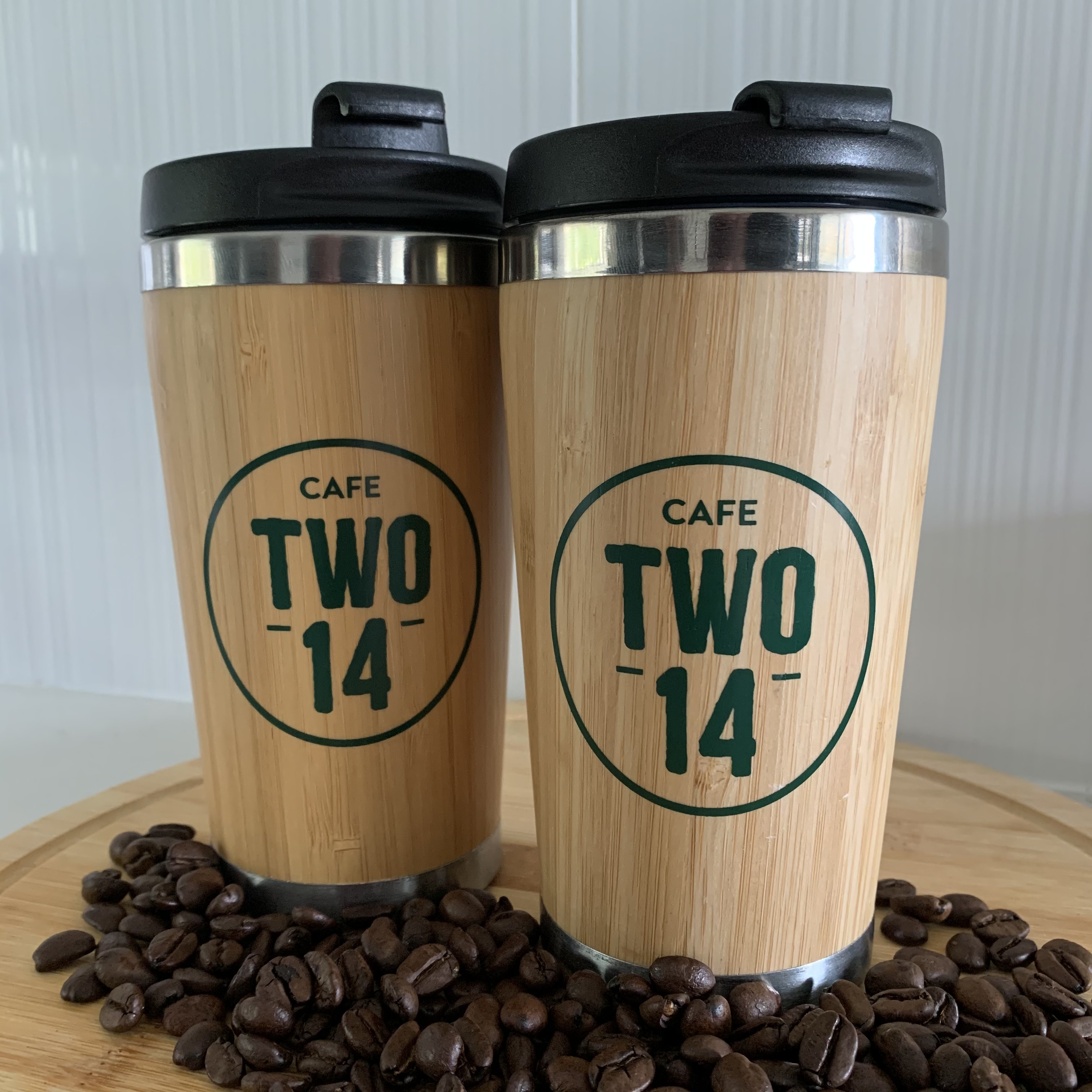 Keep your Two 14 coffee nice and warm on your daily travel with our new insulated, bamboo reusable cups!